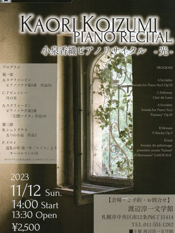 札幌市手稲区にある「こいずみピアノ教室」の講師である小泉香織のピアニストとしての活動についてお知らせいたします。